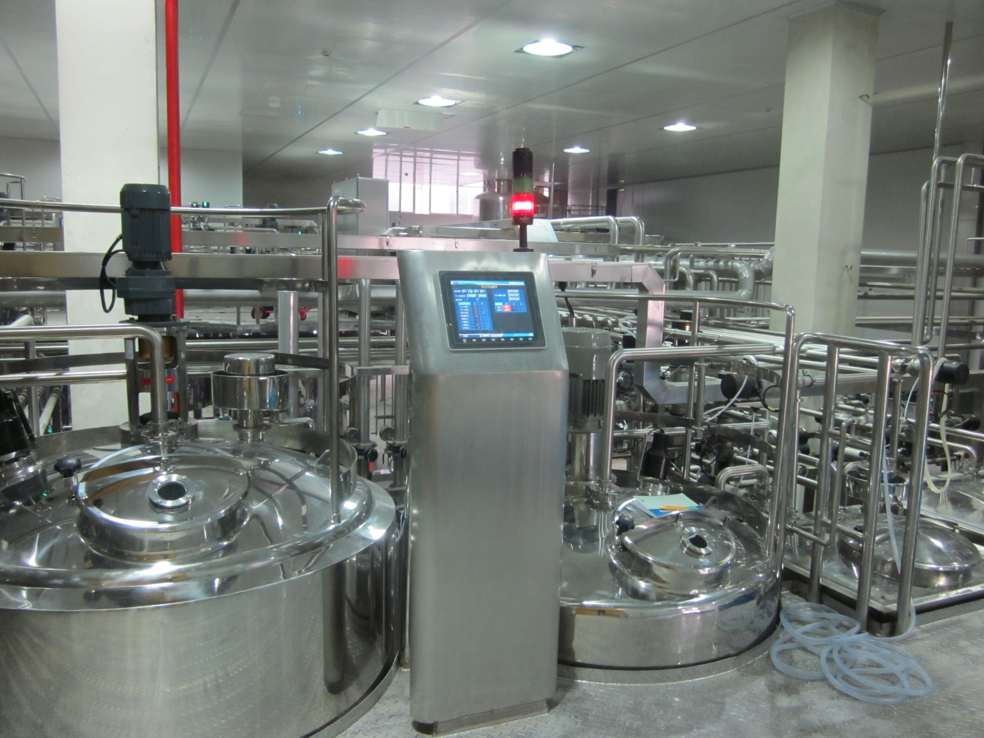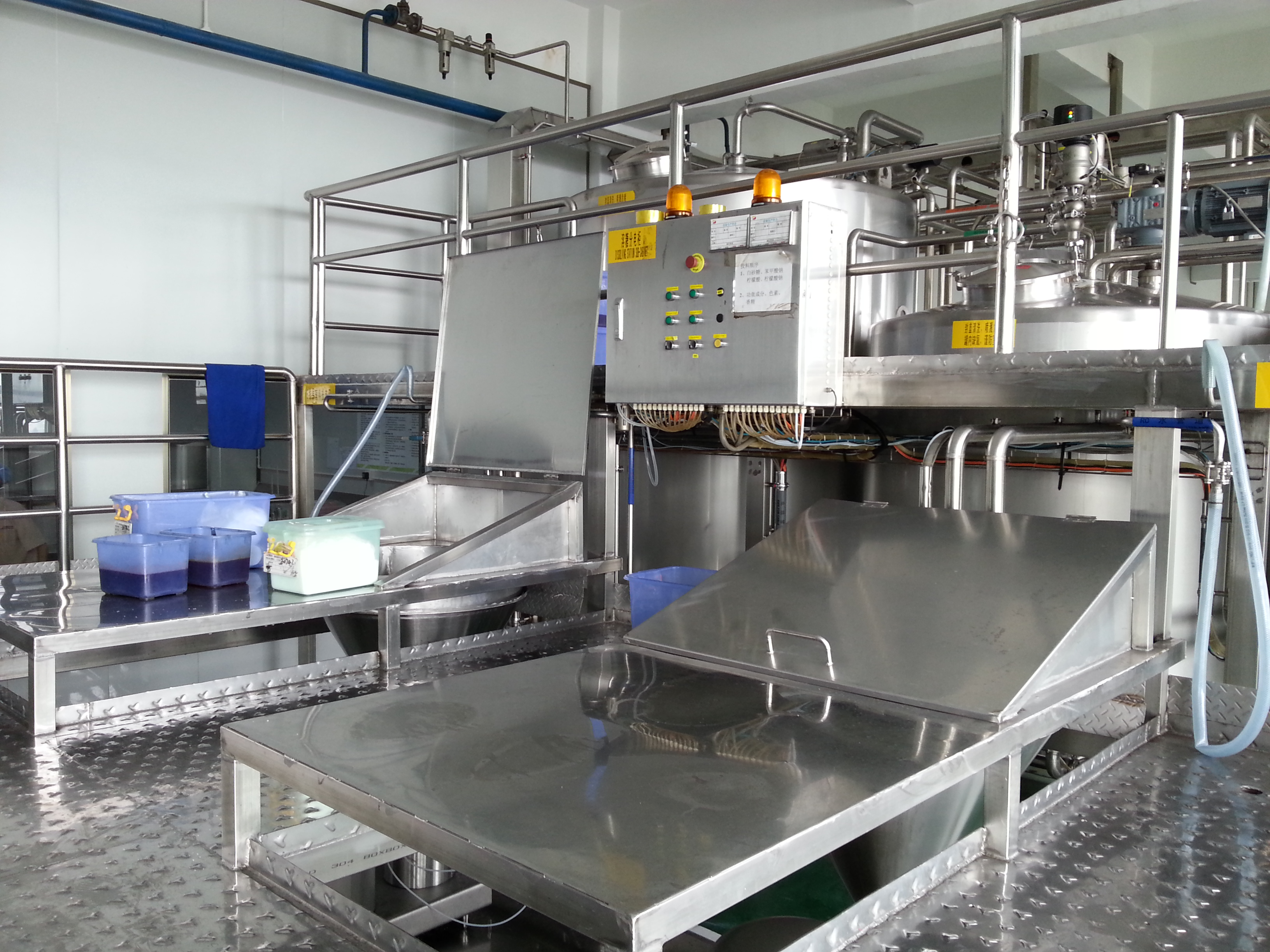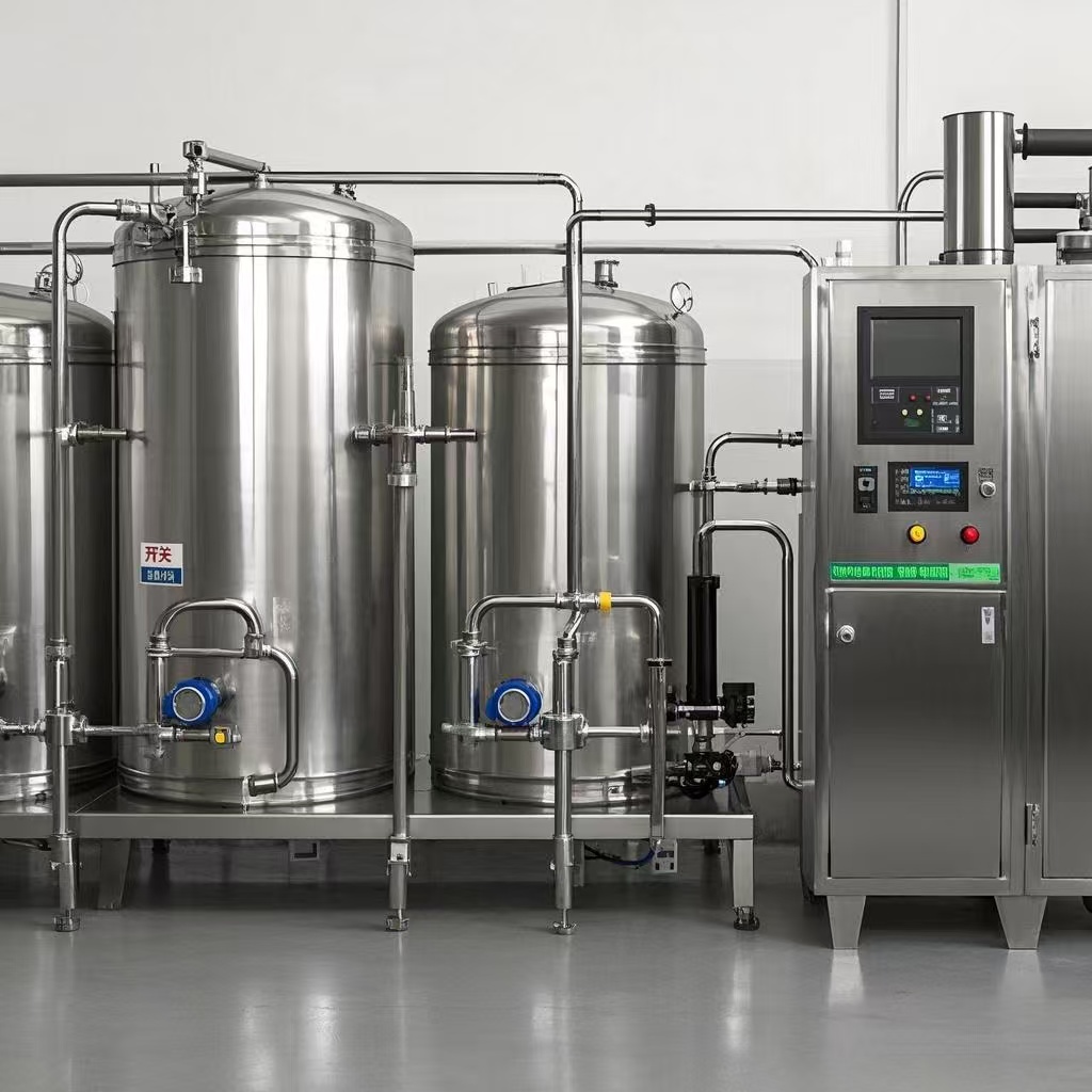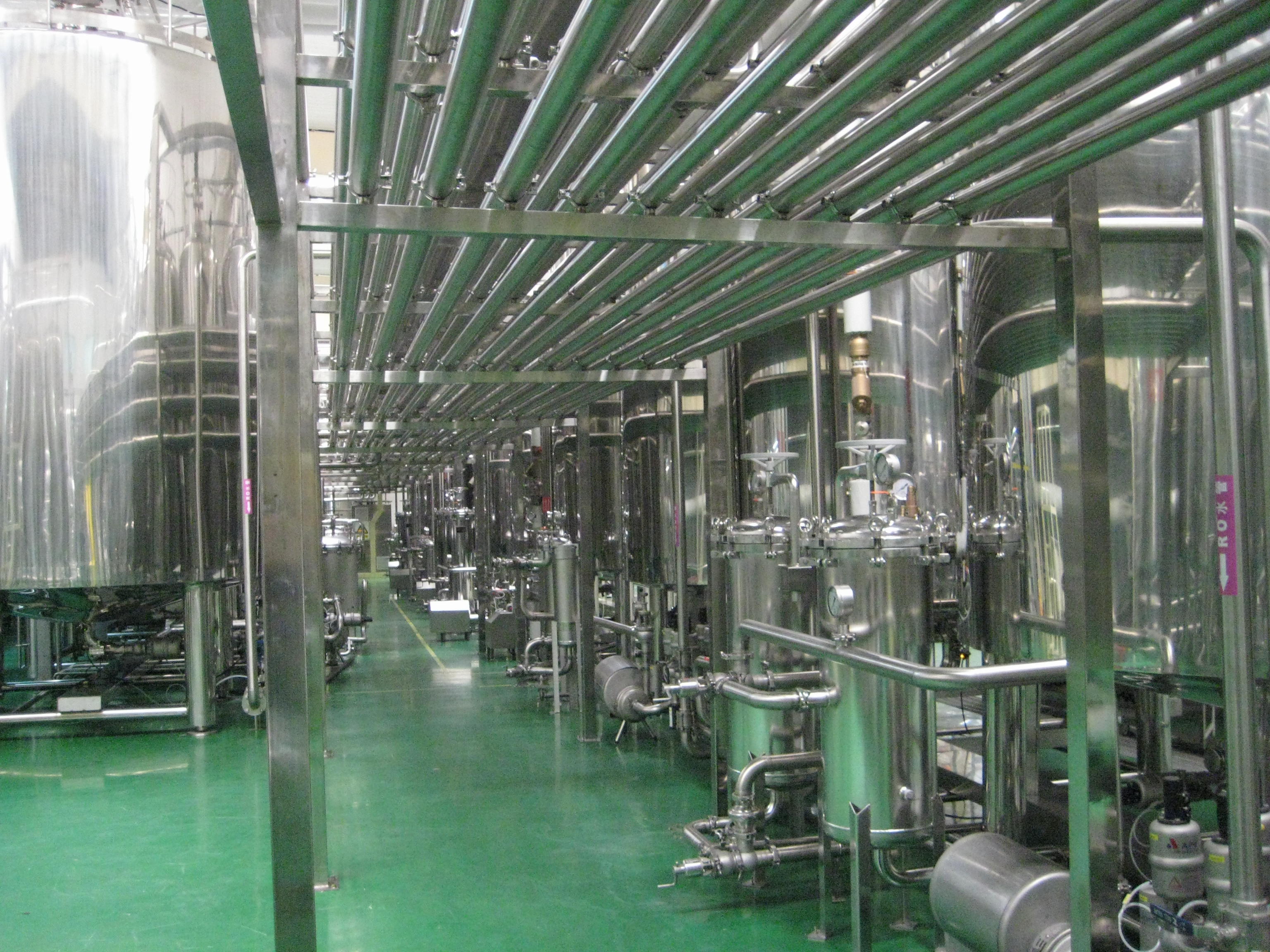 饮料前处理系统是饮料生产的核心预处理阶段,负责将原料(水、糖、添加剂、果汁等)转化为符合标准的半成品浆料,确保产品口感、安全性及稳定性。其直接决定最终饮料的风味一致性、保质期及生产效率。我司的核心优势 1. 品质稳定:精确配比与杀菌工艺,确保批次一致性。 2.高效生产:连续式处理(如UHT线产能可达10吨/小时)。 3. 灵活适配:模块化设计支持快速切换产品配方(如切换糖度、风味)。 4.安全合规:符合HACCP、FDA标准,杜绝微生物污染风险。